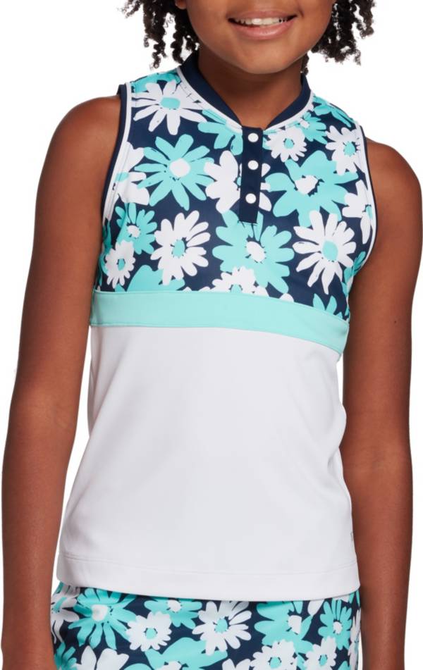 DSG Girls' Floral Mock Neck Sleeveless Polo Shirt