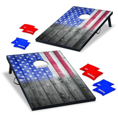 Wild Sports 2 x 3 Foot Old Glory Stars and Stripes USA Flag Cornhole Toss Outdoor Bags MDF Wood Board Game Set with 8 Bean Bags (2 Pack)