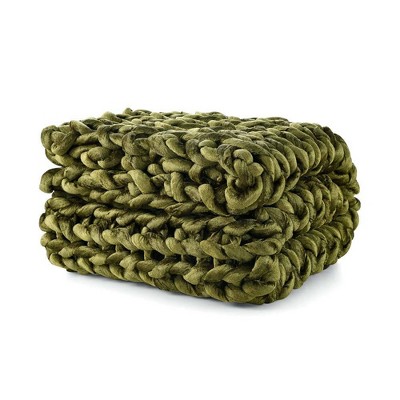 66"x48" Viscose from Bamboo Velour Knitted 10lbs Weighted Throw Blanket Olive - Gravity