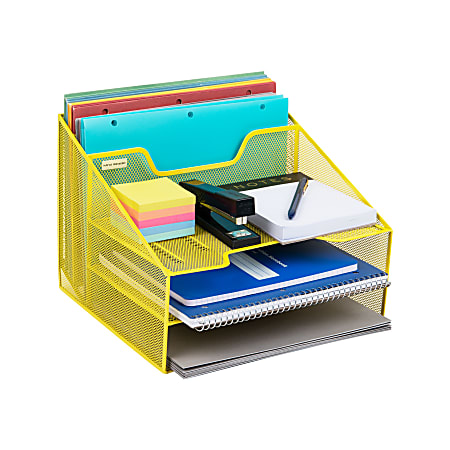 Mind Reader 5-Compartment Desk Organizer, 9-1/8”H x 12-1/2”W x 11”D, Yellow